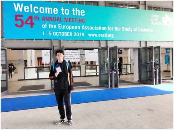 2018年10月1日至5日,第54届欧洲糖尿病协会年会(EASD)在德国柏林召开,2015级临床医学151班孙霁在大会上充分展示了我校学子的学术风采。