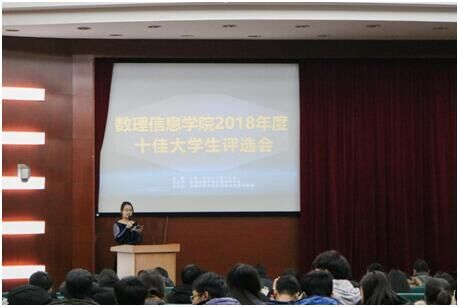 12月13日晚上,数理信息学院2018年度“十佳大学生”评选会在南山校区七号楼报告厅举行。