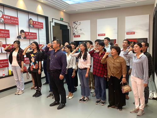 全体党员还在党旗前重温入党誓词,不忘初心,牢记使命。