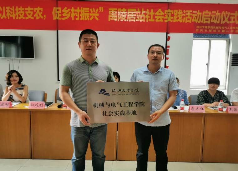 为贯彻落实党中央“乡村振兴”重要战略,引导大学生在社会实践活动中受教育,长才干,作贡献,7月19日, 机械与电气工程学院“以科技支农,促乡村振兴”暑期社会实践启动仪式在越城区稽山街道禹陵居委会文化礼堂举行。稽山街道、校团委、机械与电气工程学院、各社区、企业负责人及暑期社会实践学生出席活动。