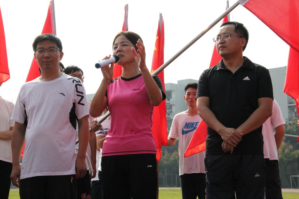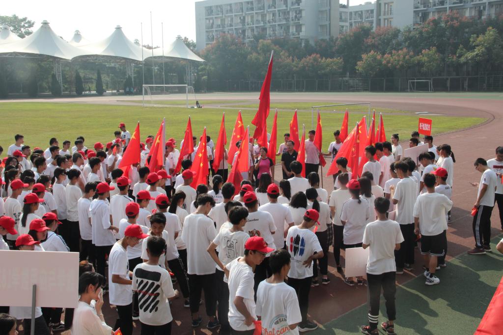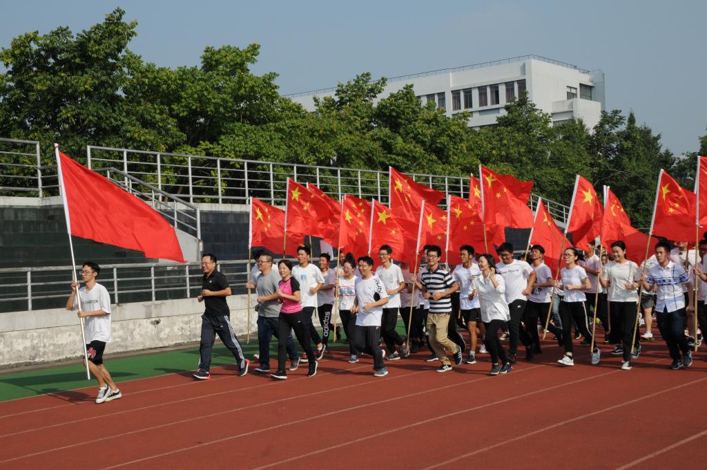 开幕式上,参加合唱的学生进行了快闪活动,献唱了《我和我的祖国》,他们用最熟悉的旋律,表达了对祖国最真挚的祝福。参加跑团的全体学生组成方队摆出“70”的字样,以庆祝新中国成立七十周年。随后,郝敬习宣布“迎国庆数理奔跑,看校园最美风景”活动正式开始。在红旗的带领下,由老师领跑,浩浩荡荡的奔跑队伍在操场慢跑一圈后跑入校园,边跑步边欣赏初秋校园美丽的风景。