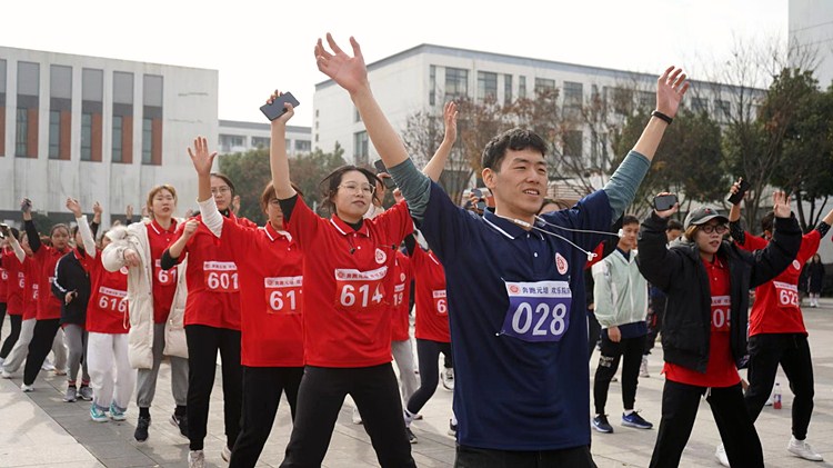 冬日的校园,寒风阵阵。这场酣畅淋漓的比赛打破了入冬以来的寒冷,点燃了师生们的热情。起跑前,全体参赛选手在元培广场集合,他们身着纪念文化衫,胸别号码布,精神饱满,活力十足,跟随体育教研室穆玉华、朱同键团队进行赛前的互动热身。参赛跑道起点上,他们跃跃欲试,蓄势待发。