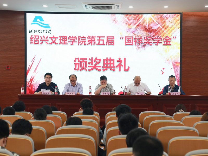 沈士根代表学院向持续支持学院发展的浙江国祥股份有限公司表示崇高的敬意和衷心的感谢。他对同学们寄予希望:一方面要以获奖先进典型为榜样,奋起直追,比学赶超;另一方面要严格要求自己,发挥带头作用,带动身边同学共同进步、共同成长、共同发展,从一点一滴做起,涵养高尚品行,坚持学习本位,学会正确判断,注重知行统一,努力成为可堪大用、能负重担的栋梁之材。