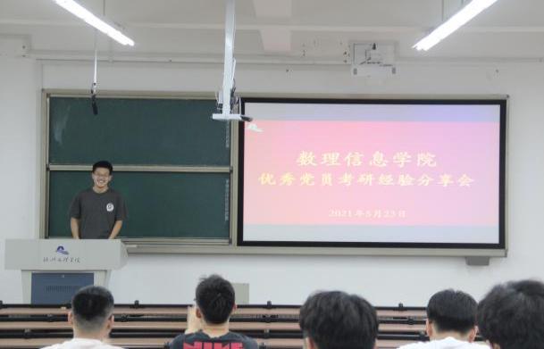 为进一步做深做实“我为群众办一件实事”活动,数理信息学院各学生党支部利用学院原有考研优势,精准做好就业帮扶,5月23日晚,在南山校区综合楼A303召开了各党支部优秀党员考研经验分享会,学院五大专业优秀考研学生代表、学生党支部书记、2018-2019级意向考研同学参加了分享会,本次分享会旨在加强同学们对考研知识的了解,营造积极向上的学风,鼓励同学们坚持考研、坚定信心。