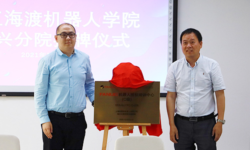 会上,信息与机电工程分院副院长冯方简要介绍哈工海渡机器人学院绍兴分院建设规划。沈红卫与尹政现场签约,共同为“哈工海渡机器人学院绍兴分院”揭牌;学院副院长李黎与尹政为“机械行业能力评价考试站”揭牌;信息与机电工程分院书记兼院长潘慧与封佳诚为“FANUC机器人授权培训中心”揭牌;信息与机电工程分院副书记宣仁旗与俞士熔为“校企合作基地”揭牌。