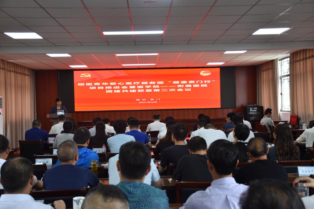 6月2日,绍医青年爱心医疗服务团“健康贵门行”项目推进会暨医学院—附属医院团建共建联盟第二次会议在嵊州市贵门乡举行。校党委副书记张宏,校党委委员、宣传部长梁瑜,嵊州市副市长钱群飞,医学院,校团委,校附属医院,嵊州市卫健局,贵门乡等部门主要负责人参加会议。