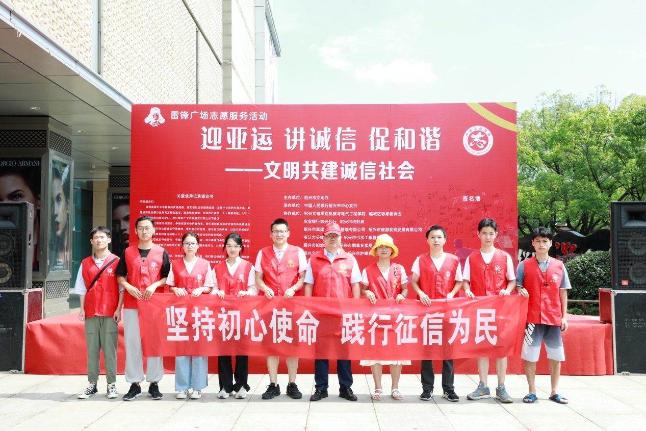 6月12日上午,由绍兴市文明办、中国人民银行绍兴市中心支行、我校机械与电气工程学院等14家单位和团队联合举办的以“迎亚运、讲诚信、促和谐——文明共建诚信社会”为主题的雷锋广场志愿服务活动在绍兴银泰广场顺利开展。绍兴市文明办副主任俞继抗、机电学院党委副书记林国旗和人民银行绍兴市中心支行等相关负责人出席活动。