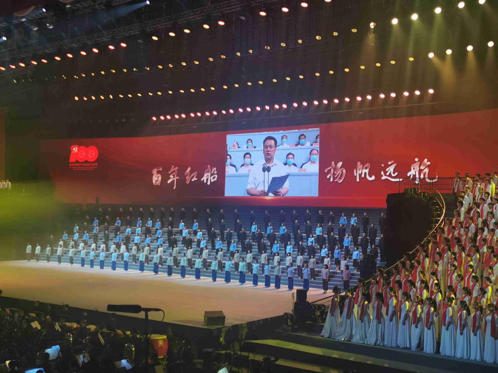 6月27日晚,浙江省庆祝中国共产党成立100周年大型交响诗画文艺演出《百年红船扬帆远航》在黄龙体育中心体育馆上演,以艺术的形式回顾党的奋斗历程、讴歌党的光辉业绩、祝福党的百年华诞。演出由省委宣传部、省文化和旅游厅、浙江广播电视集团主办,浙江音乐学院和浙江演艺集团、浙江省黄龙体育中心承办。