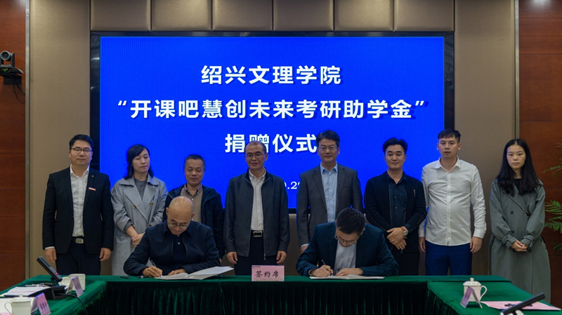 校对外联络处处长、教育基金会理事长陈立与开课吧江浙皖大区总经理竺浪代表双方签订捐赠协议。机械与电气工程学院党委书记陈文平代表学校接受捐赠。机械与电气工程学院院长沈士根代表学校向北京慧科公益基金会颁发捐赠证书。