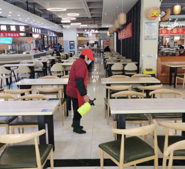 做好食堂安全防护,各方面严把防控关。严格执行晨检制度,餐厅经理每天对食堂人员严格进行体温检测、问询及口罩衣帽穿戴检查,全面掌握在岗员工的身体健康状况和动向,确保每一名员工安全上岗。加强对食堂的消杀工作,每天多次对食堂内外进行消毒喷洒,不放过任何一处角落。严格执行操作间餐厨具的清洗消毒、食品安全检查和食品留样等规范操作,并严格按要求记录。
