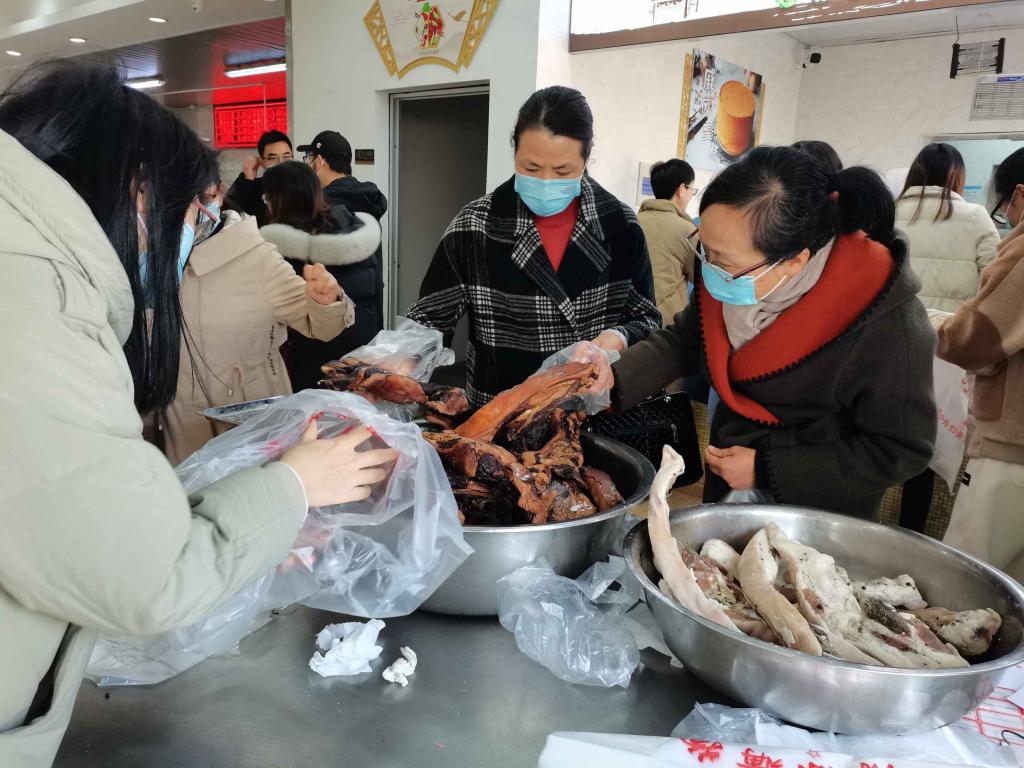 真材实料、安全放心的酱货一经出售,就受到了广大教职工的热捧。售卖第一天,第一批酱鸭、酱鹌鹑、酱鳊鱼干便被大家抢购一空。接下来,餐厅将继续加工制作酱鸭、酱肉等保障酱货充足供应,同时餐厅也推出了自制粽子,满足广大师生的购置需求,本次年货供应至1月7日结束。