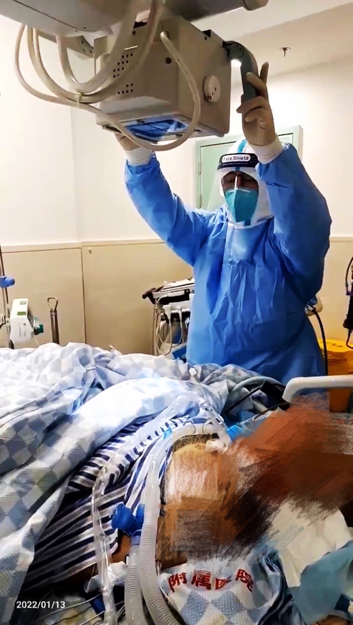 12月24日,姚克林作为一名老党员增援进入红区。他的主要工作是带好团队,为新冠肺炎病人做CT检查。因防护要求每班6个小时,穿着防护服,CT操作就没有平常那么轻松;截止1月17日,团队完成 1980人次的新冠肺炎CT检查。