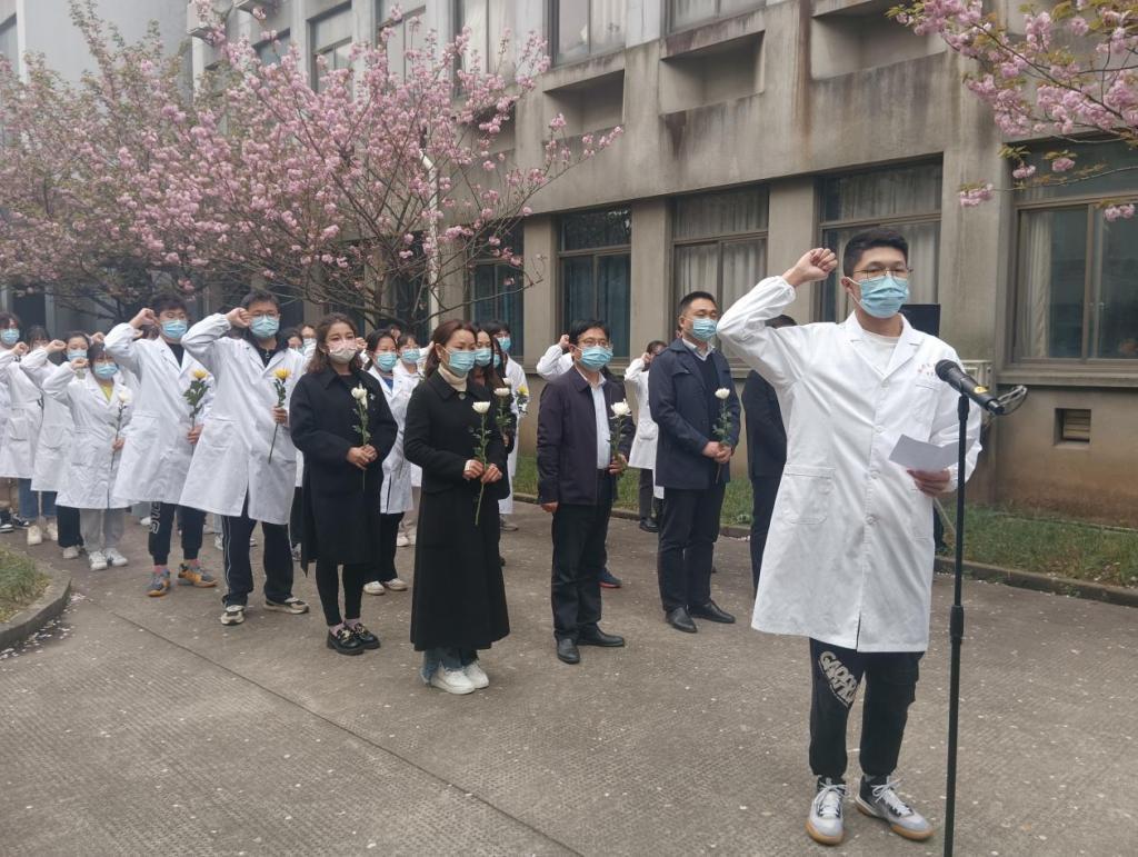 4月2日,清明节到来之际,无语良师缅怀活动在无语良师纪念广场举行。校团委书记、校红十字会秘书长吕志伟,医学院相关师生代表等近四十人参加。