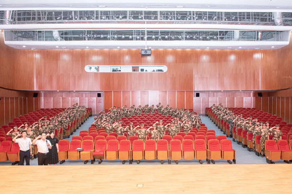 “我志愿加入中国共产党,拥护党的纲领,遵守党的章程……”,全体预备党员身着军训服、佩戴党员徽章,按照“101”的站位,在院党委书记梁瑜的领誓下,高举右手,庄严宣誓。