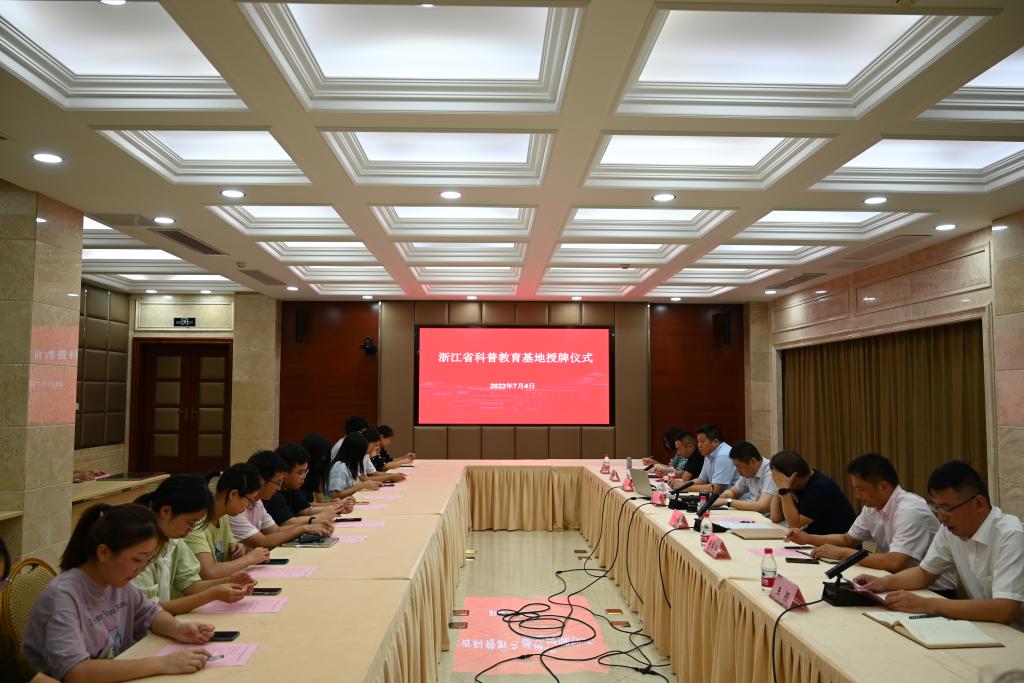 劳越嘉和徐青共同为浙江省科普教育基地授牌。