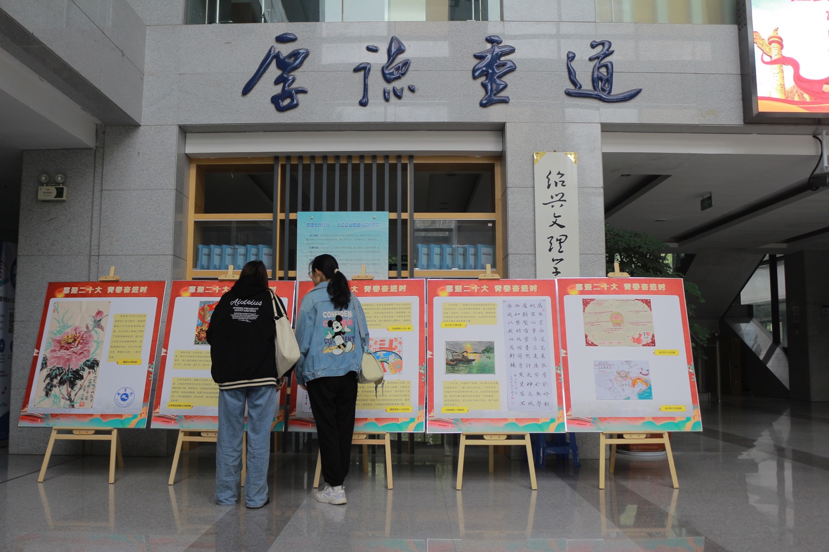 为着力引领广大青年学子听党话、跟党走,喜迎党的二十大召开,近日,商学院举办“喜迎二十大,青春奋进时”主题作品展。学生以书法、绘画、诗歌、征文等多样形式,讴歌党,讴歌祖国,讴歌人民,讴歌新时代。