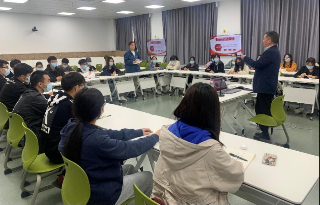 沈赤为同学们介绍了党的二十大议程和重要论述,剖析了党的二十大的重大历史和现实意义,系统解读了党的二十大报告的主要内容,并重点阐释了青年学生贯彻落实党的二十大精神的思考启示和实践要求。