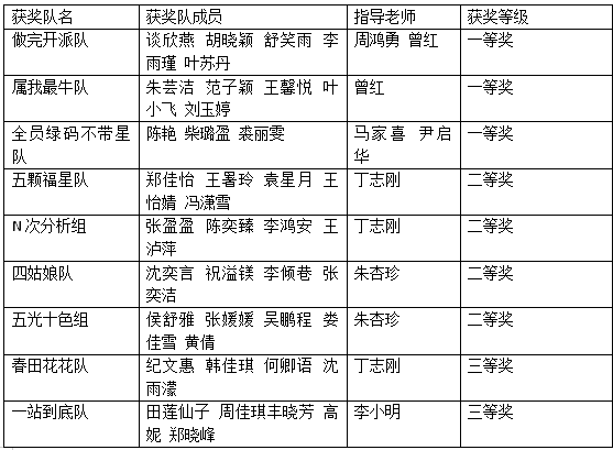 近日,由浙江省教育厅大学生科技竞赛委员会主办,杭州电子科技大学、湖州师范学院承办的浙江省第八届大学生经济管理案例竞赛在湖州师范学院落下帷幕。本届竞赛全省共有74所高校参加,本科组443队参赛。初赛筛选出30所本科院校103支队伍入围决赛,争夺一、二等奖。我校共派出12支队伍参赛,7支队伍成功进入决赛,最终获一等奖3组、二等奖4组、三等奖2组。