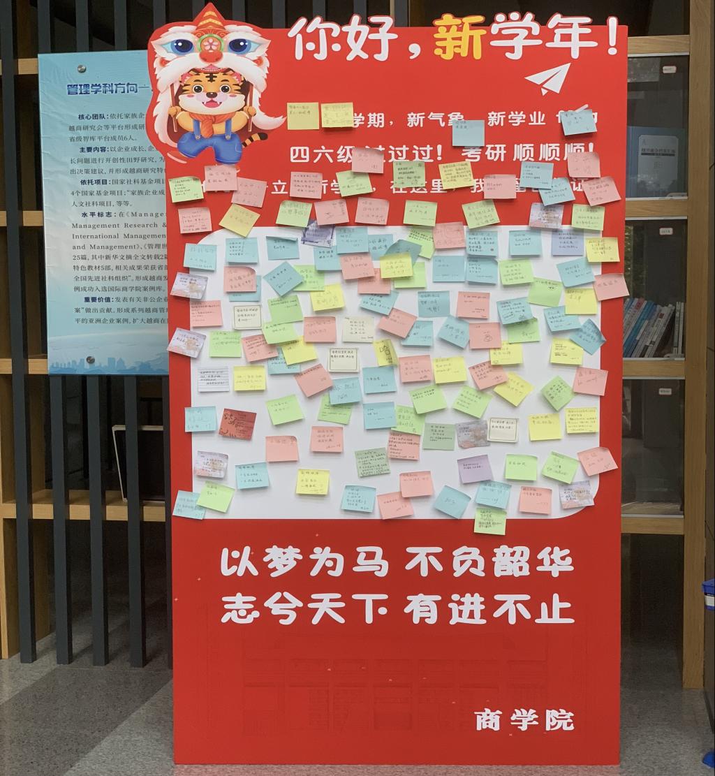 商学院坚持“活动育人”理念,开展内容丰富、形式多样的学风建设活动。本学期,陆续开展了新生“学国史,励青春”读书活动、“新学期,一起来立Flag”、“喜迎二十大,青春奋进时”主题作品展、“越地·百生讲坛”系列活动,为学生搭建一个展示自我、发展自我的舞台,引领学生成长成才。