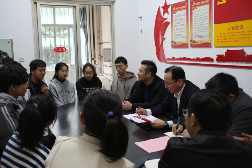 班主任汇报了班级同学日常学习、工作、生活等方面情况,学生代表逐一交流了近期学习、工作、生活情况,同时也就专业学习、考研、基础设施等提出了意见和建议。张宏耐心细致地为同学们一一解答,鼓励同学们要立大志,认真学好专业知识,坚定考研目标;要珍惜大学期间同学之间的珍贵情谊,努力营造和睦、友爱、有温度的班级氛围;要加强体育锻炼,健全体魄,争做卓越的文理青年,增强本领,更好地报效祖国。
