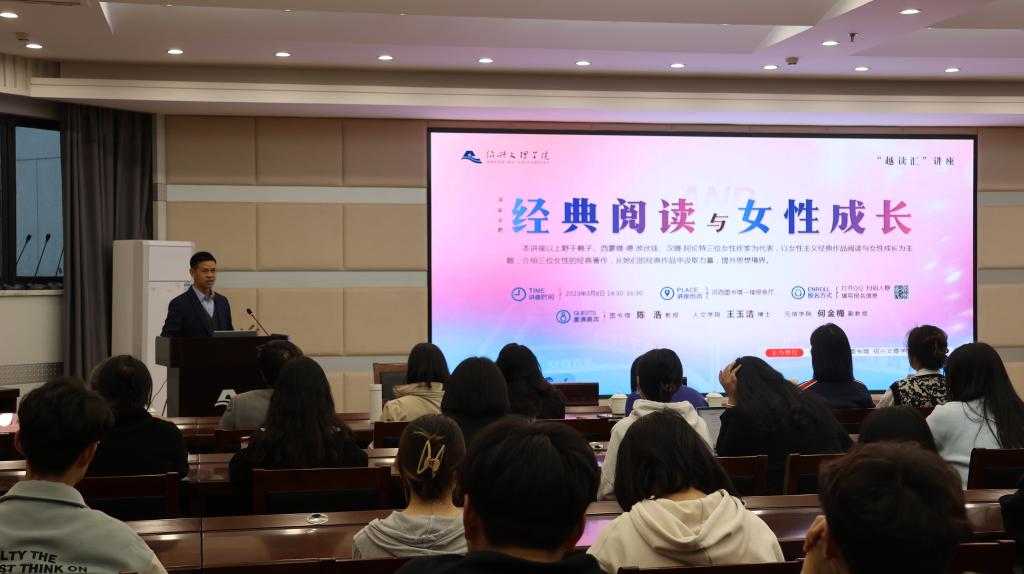 为阅读经典、汇聚多元力量,3月8日下午,一场主题为“越读汇——经典阅读与女性成长”讲座在图书馆一楼报告厅举行。
