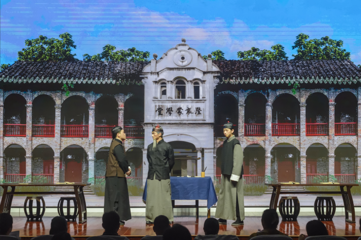 原创话剧《科学之光——此生问天唯求是》由人文学院与市科学家协会联合创作,主要讲述绍兴籍气象和地理学家竺可桢的光辉事迹,通过对其生命中重要片段的展现,勾勒其务实求是、知难奋进和知行合一的一生,赞颂老一辈科学家追求真理、崇尚创新、实事求是的科学精神。