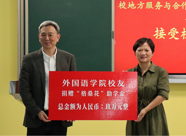 夏婷代表学校接受外国语学院校友捐赠。