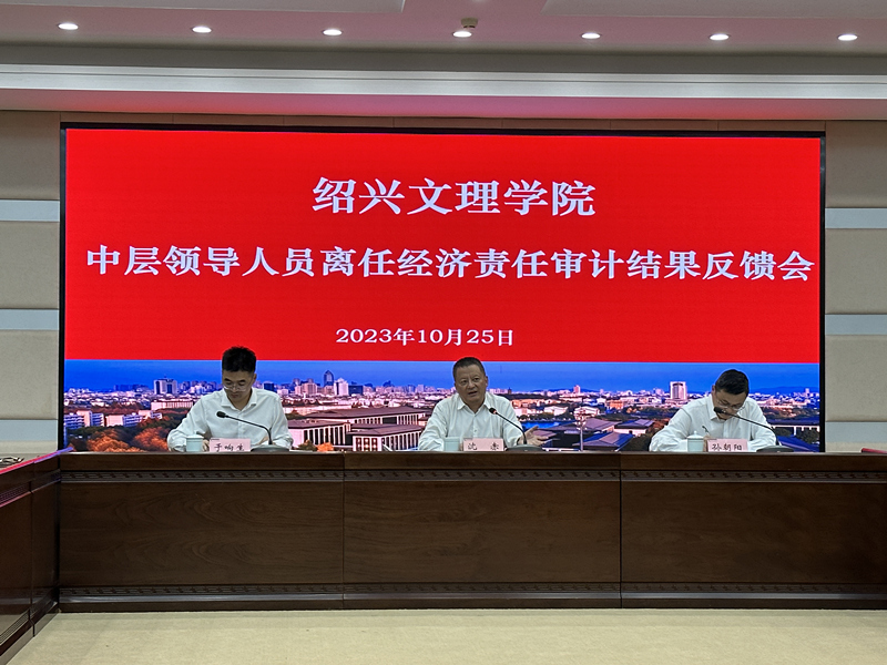 10月25日下午,中层领导人员离任经济责任审计结果反馈会在图书馆一楼报告厅召开。校党委副书记沈赤,组织部、审计处、计划财务处相关负责人,全体被审计对象及被审计单位相关同志参加会议。沈赤指出,做好离任经济责任审计工作是推进学校规范管理、推动重大政策措施落实的重要保障,是有效发挥审计监督作用的重要环节,也是加强干部队伍建设的重要方面。他强调,审计工作组织部门、被审计单位和干部要以高度负责的态度认真分析原因,上下联动抓实整改,确保审计工作真正做到“保障中心、推动工作、取得实效”。一是要提高政治站位,强化主体意识,切实增强审计整改工作的政治自觉和行动自觉;二是要坚持问题导向,形成长效机制,扎实推进审计工作落地见效;三是要强化结果运用,加强监督管理,严实打造过硬干部队伍。会议由机关党委书记、组织部副部长于响生主持。