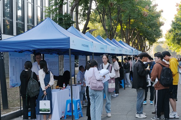 推介会后,与会领导和同学们一起参加现场招聘会,并就企事业岗位需求和毕业生求职意向积极牵线搭桥。