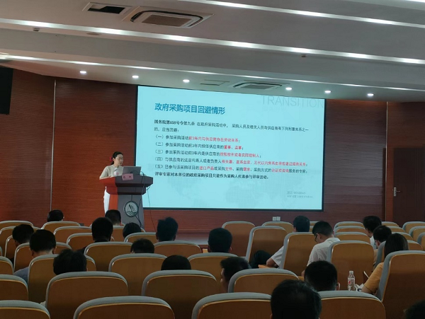 会上,绍兴市政务服务办交易管理处处长陈虹做了题为《招标风险防控》报告。陈虹从风险防控、需求管理、法律责任、评定分离等四个方面,结合国家新政策和实际案例,详细介绍了如何有效防控招标采购中存在的风险,对下一步学校的招标采购工作做出了指导和培训。