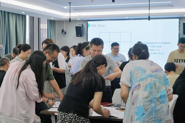 朱燕空作题为《创业如何教》的教学分享。围绕创业基础体系和逻辑框架,通过游戏、绘画、模拟实战等方式,对认知创业、管理思维与创业思维、创业团队生成与管理、设计思维与机会创造、商业模式设计、人生价值设计、商业计划、商业呈现等主题做了授课方法的剖析和授课教具的讲解。朱燕空在课堂上引入数字化工具,并对其应用场景做了生动演示,讲授了如何利用绘制行动地图等可视化手段,对创业教学活动进行总结。