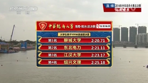 中华龙舟大赛是目前我国龙舟比赛级别和水平最高的一项电视直播赛事,该赛事由国家体育总局、中视集团联合主办,并由CCTV-5对整个赛事进行全程现场直播。我校龙舟队参加了其中4个分站赛和总决赛,取得了分站赛第二、三、四名,总决赛第四名的好成绩,同时,龙舟队通过中央电视台的直播,把学校的良好形象带到了全国观众的面前,为学校赢得了良好的社会声誉。