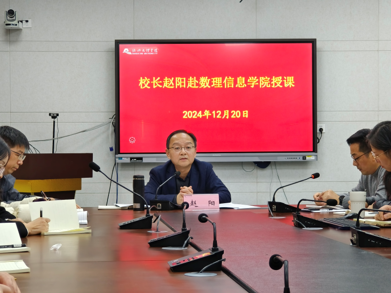 12月20日下午,校长赵阳赴数理信息学院授课。学院党政领导班子成员、党支部书记、科级干部、部分师生代表参加听讲。