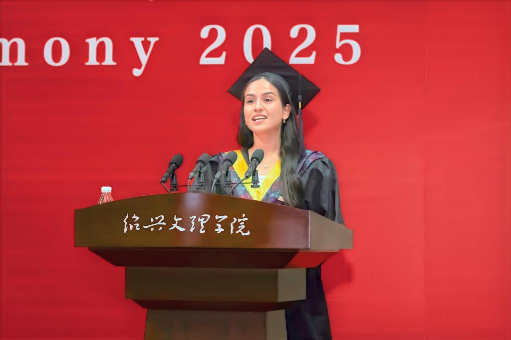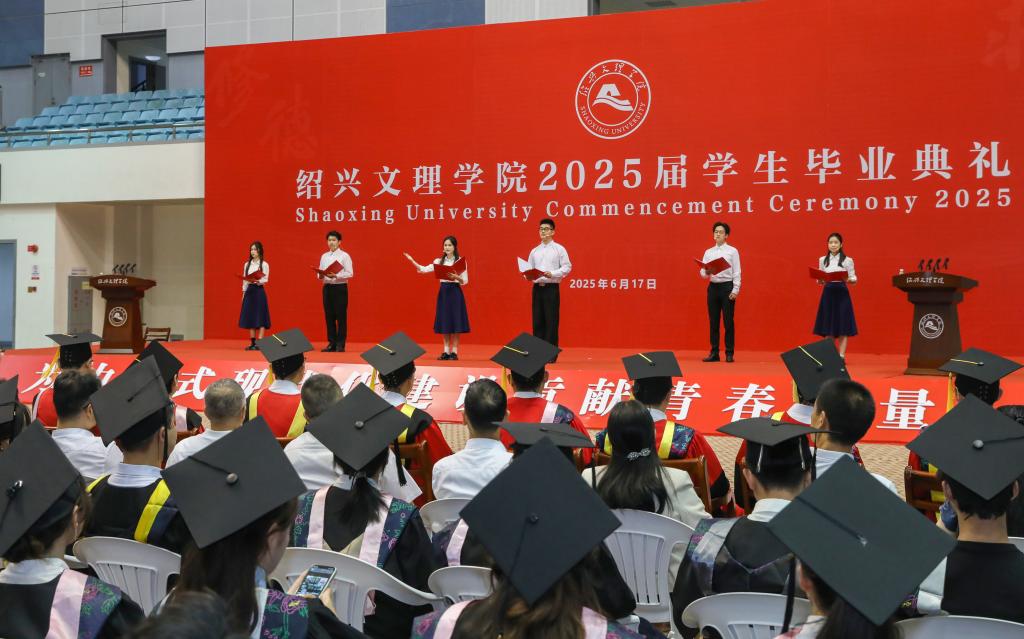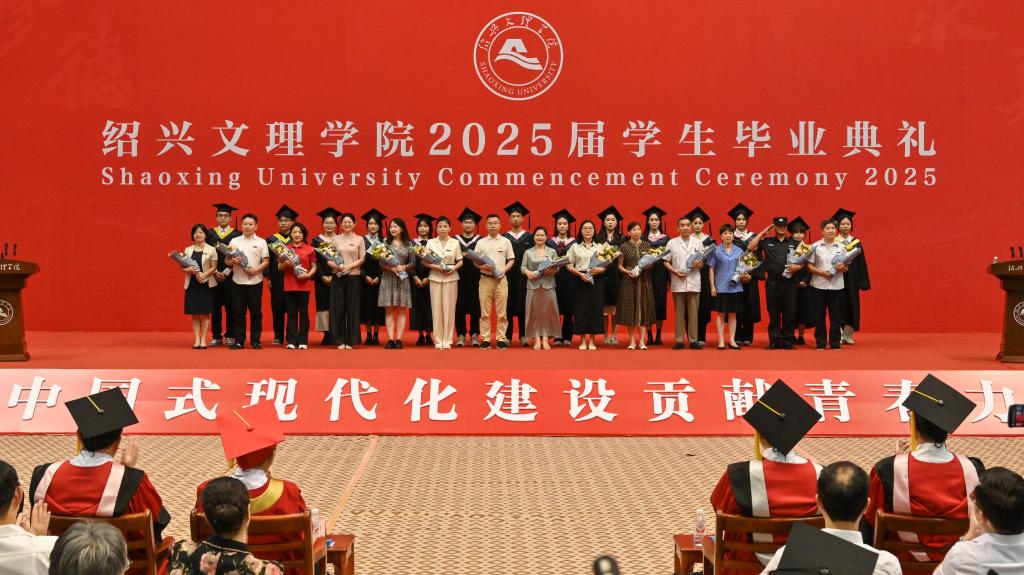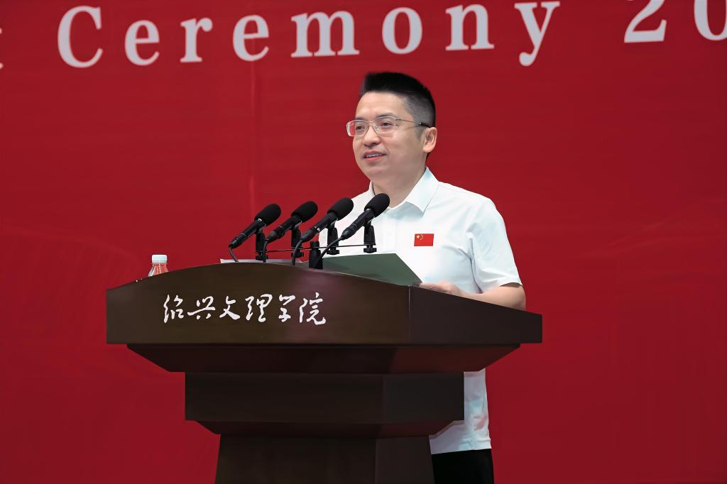 赵阳以师长的身份,将绍兴最具代表性的文化符号化作对毕业生们的殷切期待,勉励毕业生们承载镌刻着历史智慧的文化印记,砥砺奋进,勇毅前行,在实现中华民族伟大复兴的时代征程中书写精彩华章。他强调,要执“绍兴之剑”,勇立时代潮头。牢记习近平总书记的谆谆嘱托,勇担“谱写新时代胆剑篇”的历史使命,执仗信念之剑,磨砺学识之剑,挥扬担当之剑,让个人理想与祖国命运同频共振,努力成为可堪大用、能担重任的栋梁之才。要挥“绍兴之墨”,坚持守正创新。坚持“守正”理念不动摇,持续“创新”思维不停歇,始终保持锲而不舍的心态,走在创新创造的时代前列。要酿“绍兴之酒”,接续勤学笃行。坚持终身学习的理念,永葆砥砺奋斗的激情,树立无私奉献的精神,在奉献祖国、奉献人民中绽放青春的绚丽之花。