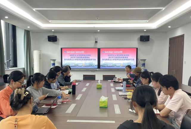 学院党委书记陈红,副书记袁海平,“越讲越响”教授博士团团长班瑞钧,马克思主义学院学生党支部、“越讲越红”大学生宣讲团学生代表等参加会议。