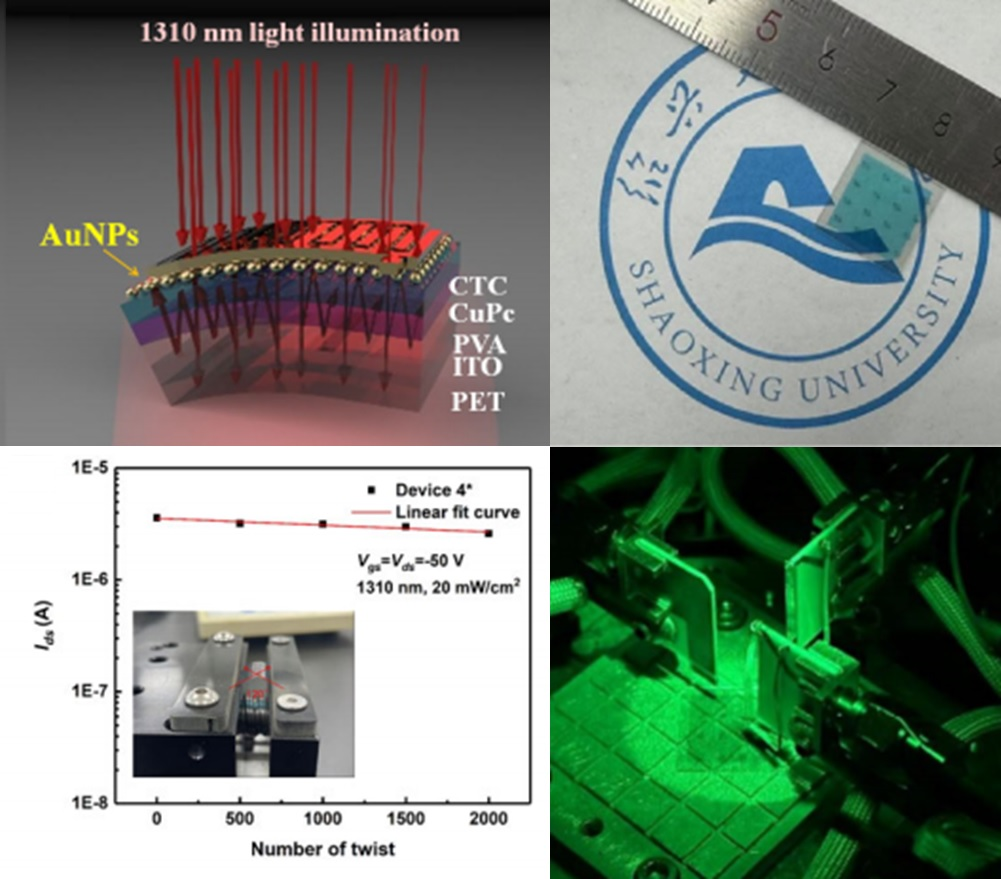 上述研究以“High-Performance Flexible Near-Infrared-II Phototransistor Realized by Combining the Optimized Charge-Transfer-Complex/Organic Heterojunction Active Layer and Gold Nanoparticle Modification”为题于2024年4月9日在线发表于IEEE(国际电气与电子工程协会)期刊IEEE Transactions on Electron Devices(IEEE出版社旗下微电子领域的国际顶级期刊,在国际微电子领域享誉盛名)。这项工作在我校微机电系统浙江省工程研究中心(MEMS工程研究中心)完成,论文第一作者为我校数理信息学院集成电路器件物理与工程专业2021级研究生石佳,我校姚博副教授和方泽波教授为该文通讯作者。芯联集成电路制造股份有限公司为本课题提供资金与技术支持。本研究得到绍兴市产业关键技术攻关计划“揭榜挂帅”重点榜单(2023B41006)和浙江省基础公益研究计划项目(LGG21F050001)等资助。