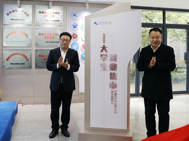 汪俊昌宣布我校“大学生周三就业集市”正式开市,并与张荣社共同为就业集市揭牌。