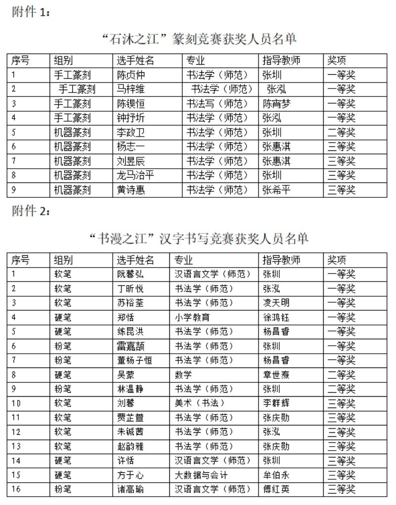 我校在浙江省中华经典诵写讲大赛 “石沐之江”篆刻竞赛与“书漫之江”汉字书写竞赛中获佳绩
